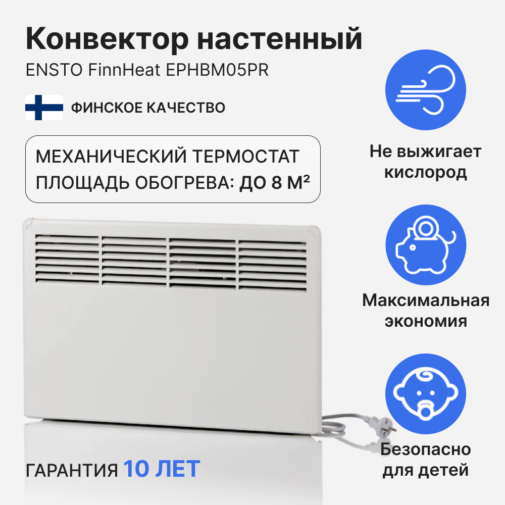 ENSTO FinnHeat EPHBM05PR конвекторный обогреватель 500 Вт механический термостат