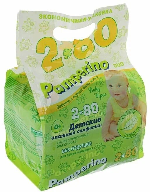 PAMPERINO Салфетки влажные , детские, без отдушки, 80 шт., 2 уп
