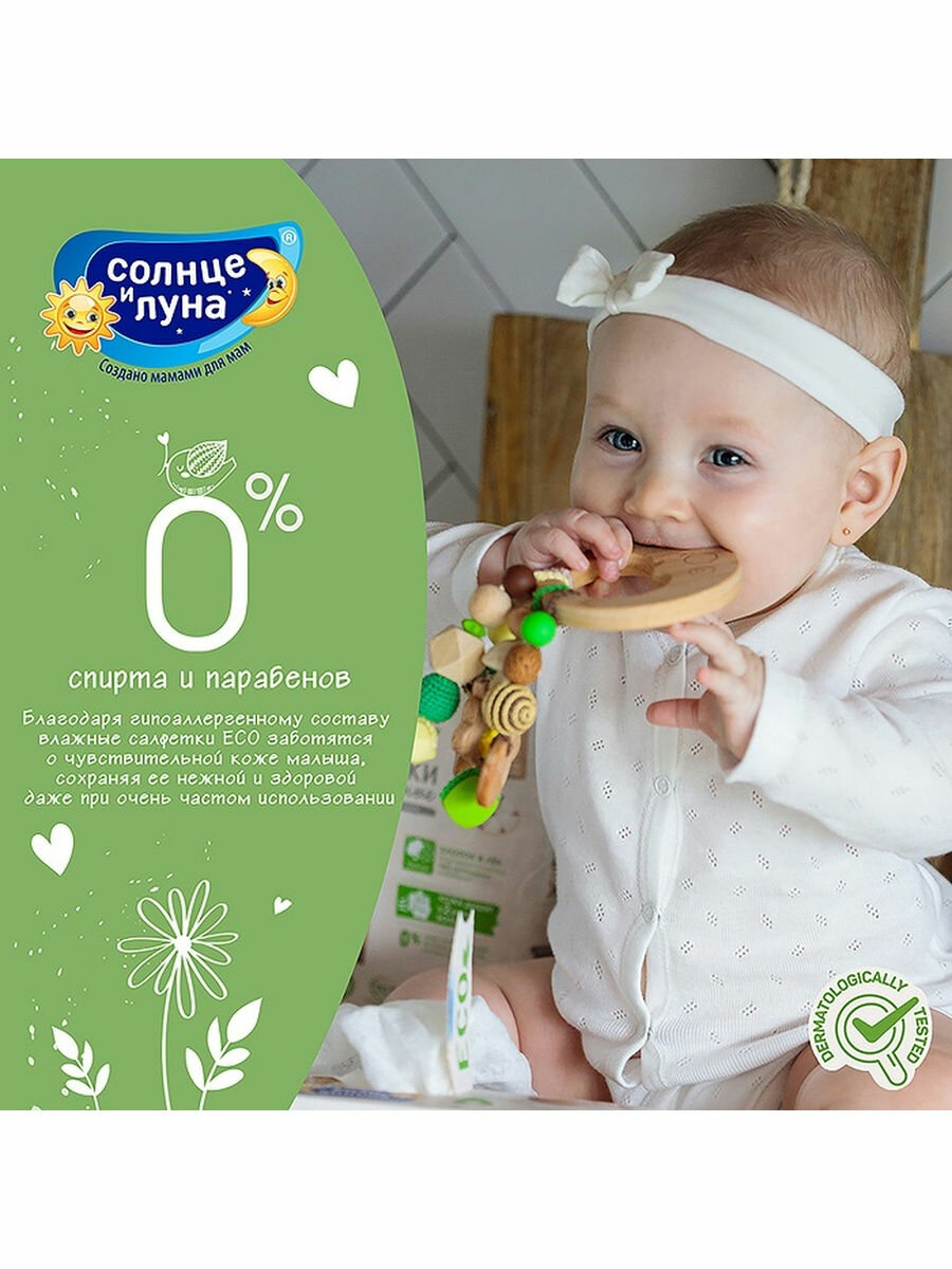 Солнце и Луна Влажные салфетки Eco, Витаминные с крышкой, Детские 0+, 120 шт., 3 уп.