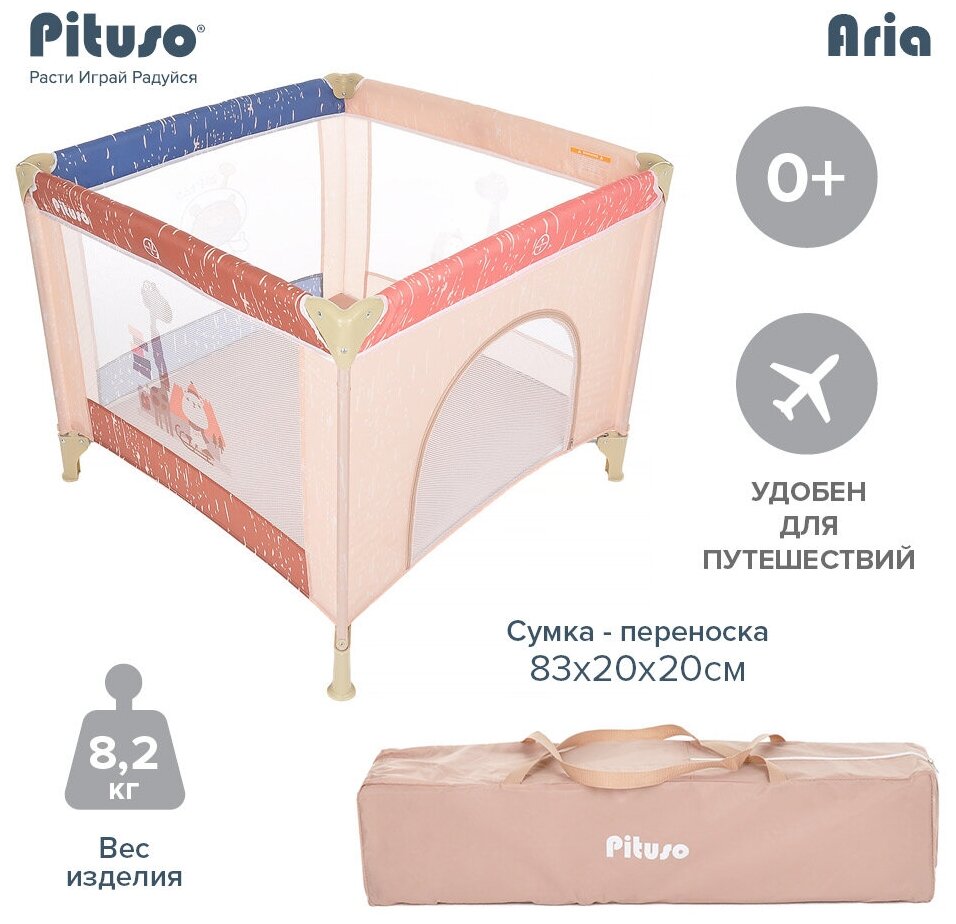 Купить Манеж Pituso Aria Жираф P618-MIX04/ манеж детский/ манеж складной/ ограждение для ребенка/ манеж-кровать/ игровой манеж