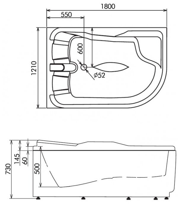 | Плюсы: | противоскользящая поверхность, долго сохраняет температуру воды, толстый акрил. |