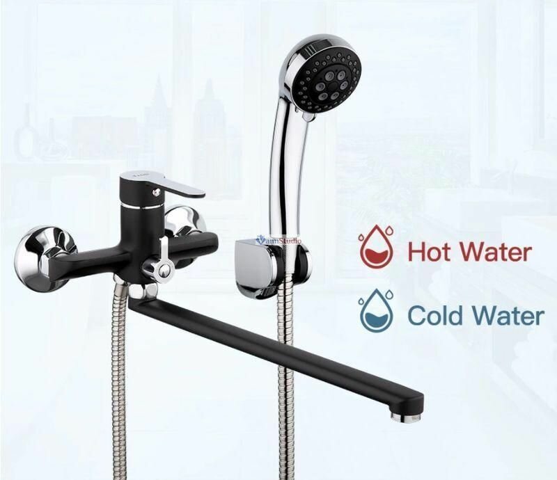 Смеситель для ванны и умывальника 35к F2242 FRAP див корп L-нос 35 см черный+хром