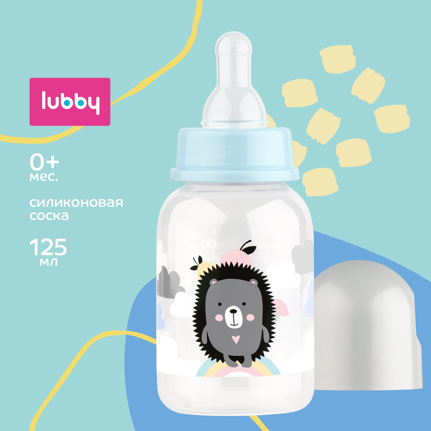 Lubby арт.12023/12 Бутылочка для кормления с соской молочной, от 0 мес., 125 мл., PP, силикон
