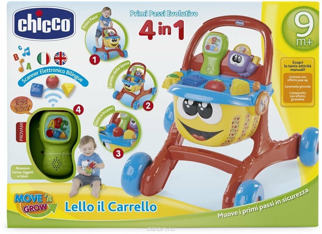 Ходунки каталка детские с ручкой, развивающая двуязычная игрушка на английском и русском языках CHICCO "Говорящая тележка" игровой центр с сортером для мальчиков и девочек от 9 месяцев