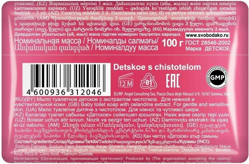 СохранитьСвобода (Svoboda) Мыло детское Свобода Чистотел 100 гр интересное: