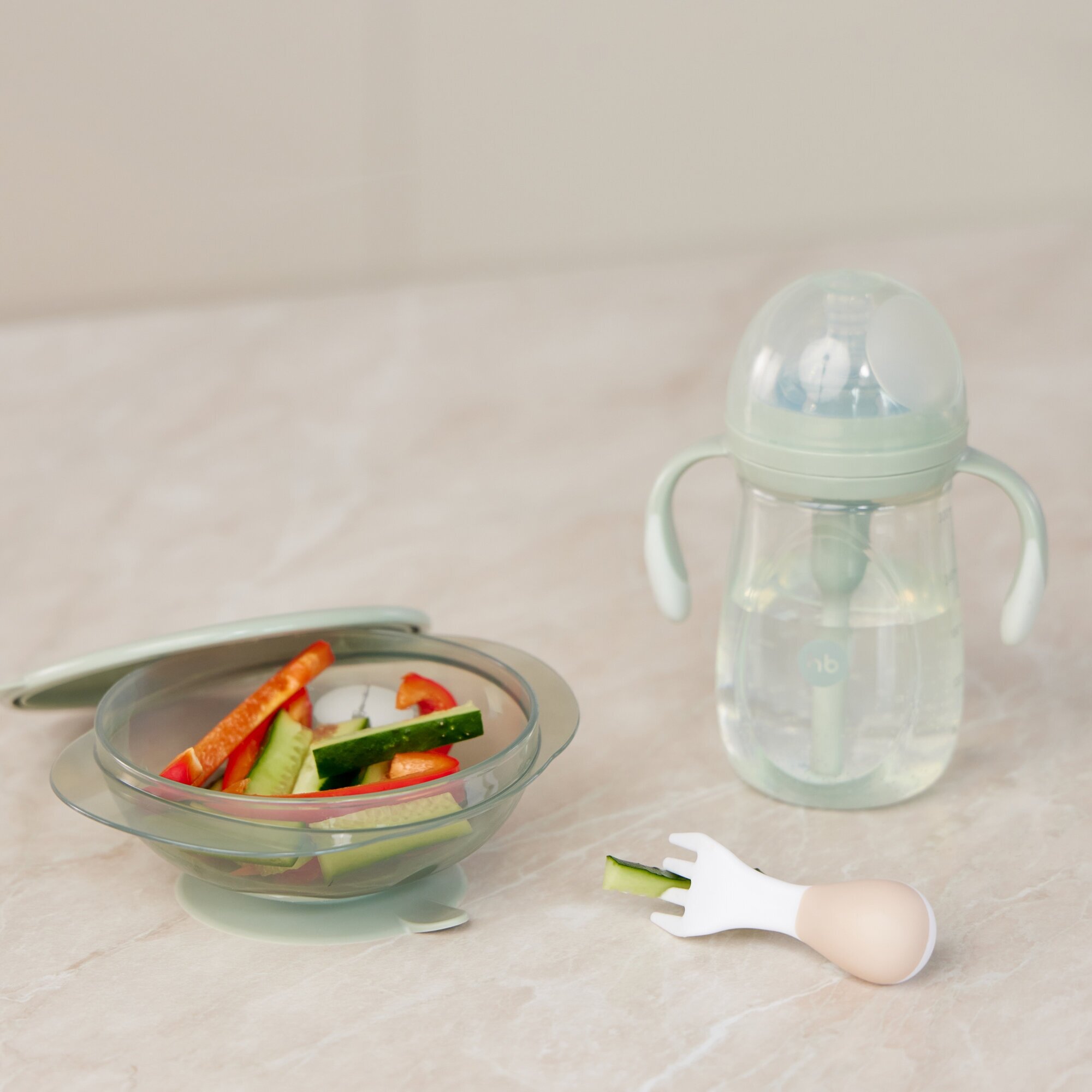 Тарелка детская Happy Baby на присоске с крышкой, зеленая