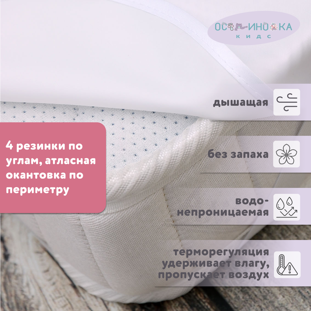 Наматрасник клеенка тканевый "дышащий" в детскую кроватку для новорожденных 70*120 с резинкой в детскую кроватку для новорожденных к16 белый интересное: