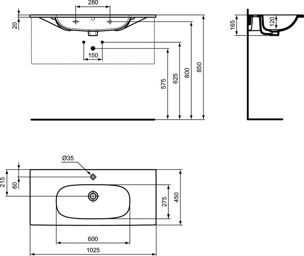 Умывальник Ideal Standard TESI плоский 100 см, 1025х450х165 белый T350801 интересное: