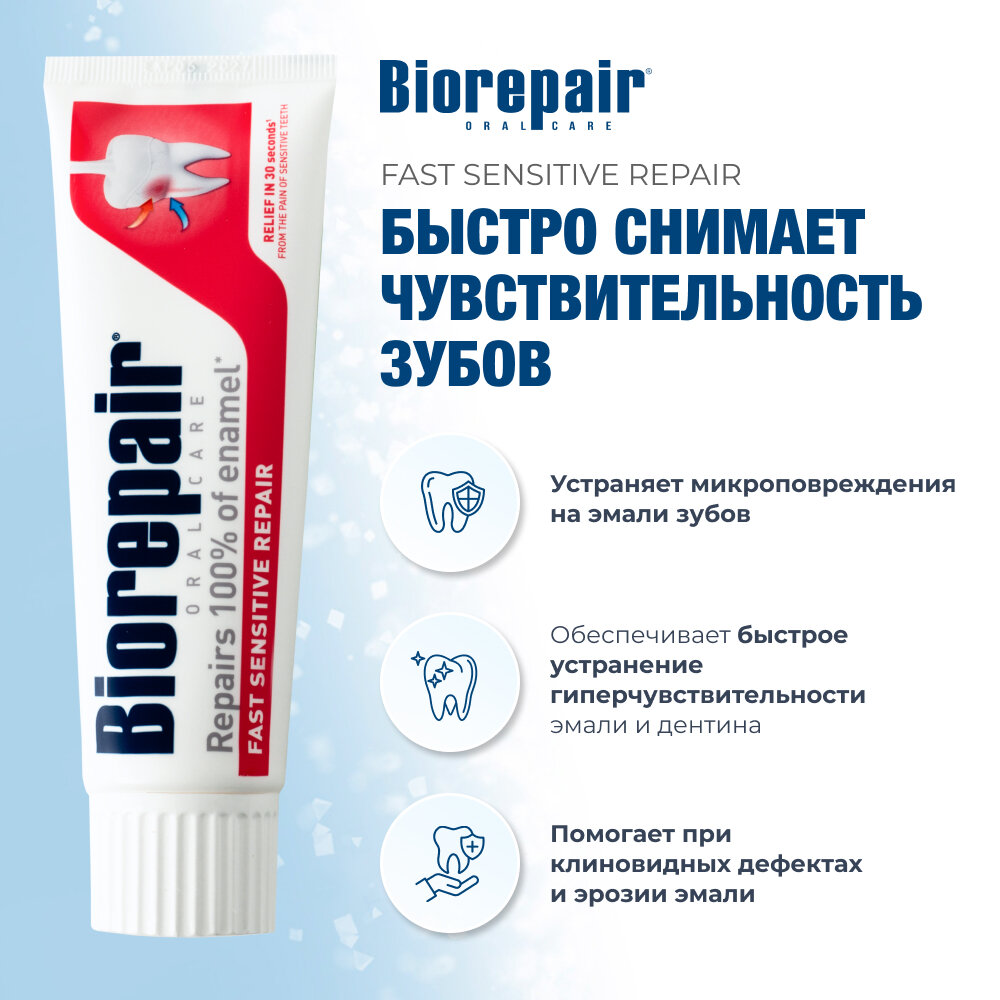 Зубная паста Biorepair Fast Sensitive Repair для чувствительных зубов, 75 мл