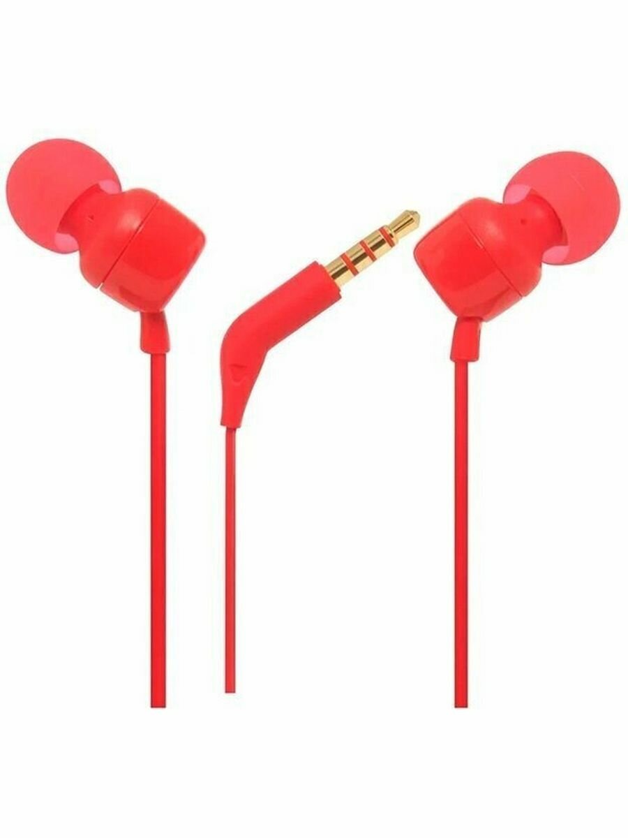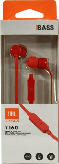 JBL Проводная гарнитура JBL T160, красная (с кнопкой ответа)