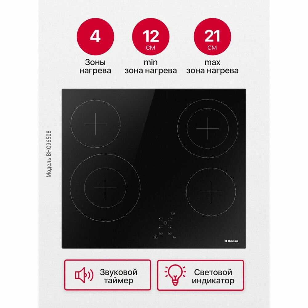 Электрическая варочная панель Hansa BHC96508, встраиваемая, автоматика закипания, таймер автоматического отключения, стеклокерамика с сенсорным управлением