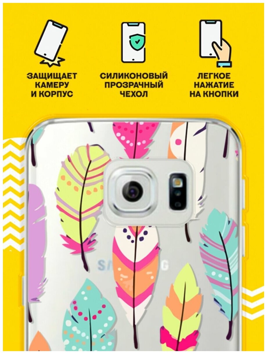 Силиконовый чехол на Samsung Galaxy S6 Edge Перья / для Самсунг Галакси С6 Эдж интересное:
