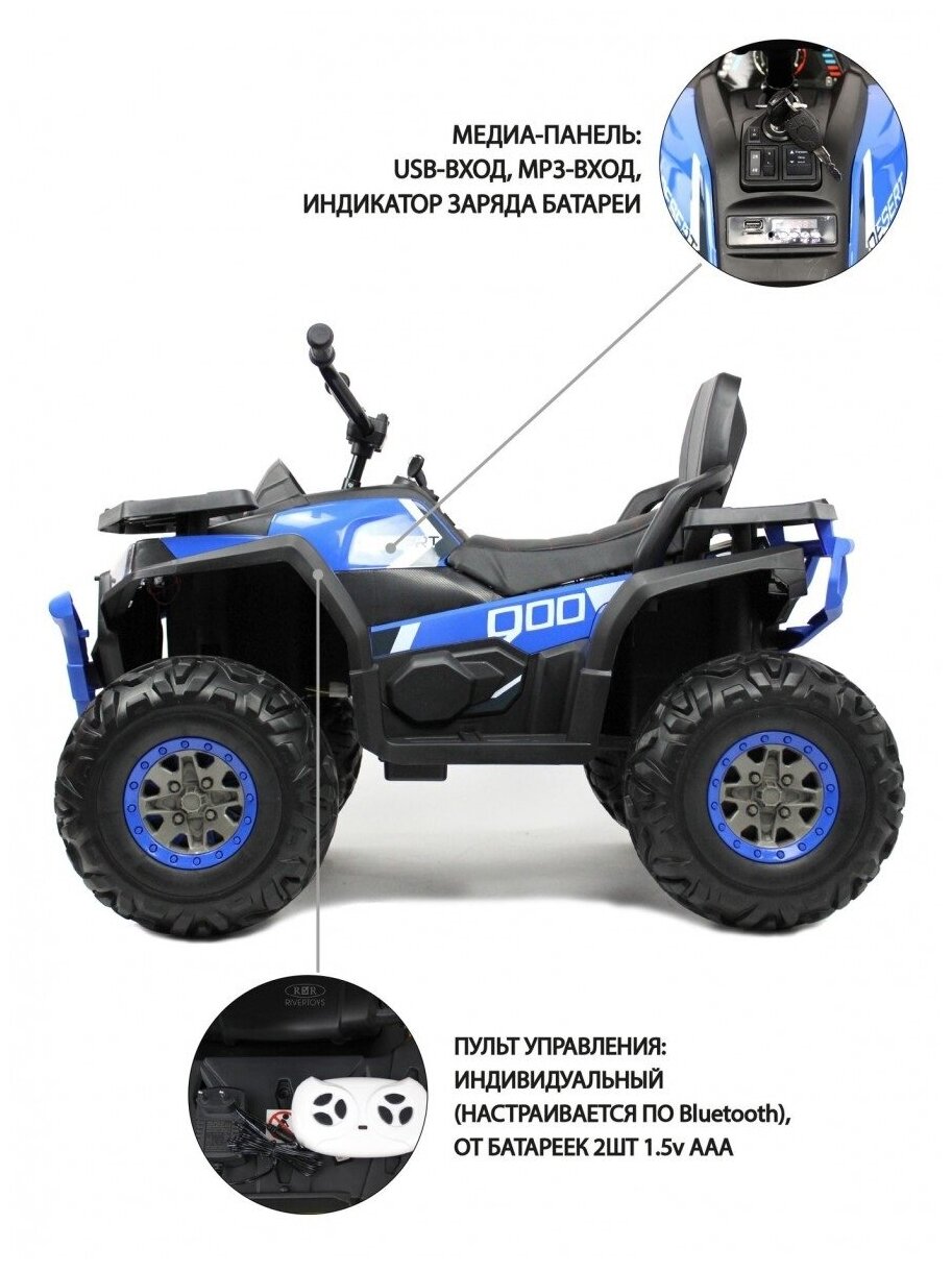 Детский электроквадроцикл с пультом 180W 12В 4WD синий интересное:
