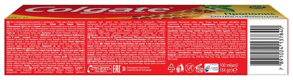 Зубная паста Colgate Прополис, отбеливающий, 100 мл, в коробке