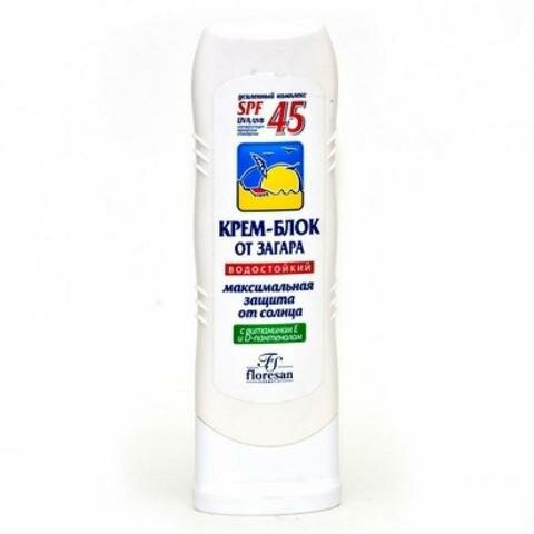 Floresan Крем-блок от загара, водостойкий, SPF 45, 125 мл.
