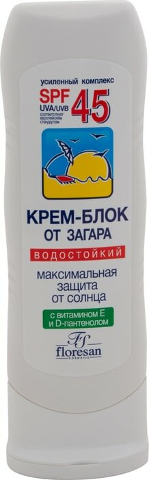 Floresan Крем-блок от загара Водостойкий c Витамином Е и Д-Пантенолом SPF45 125 мл