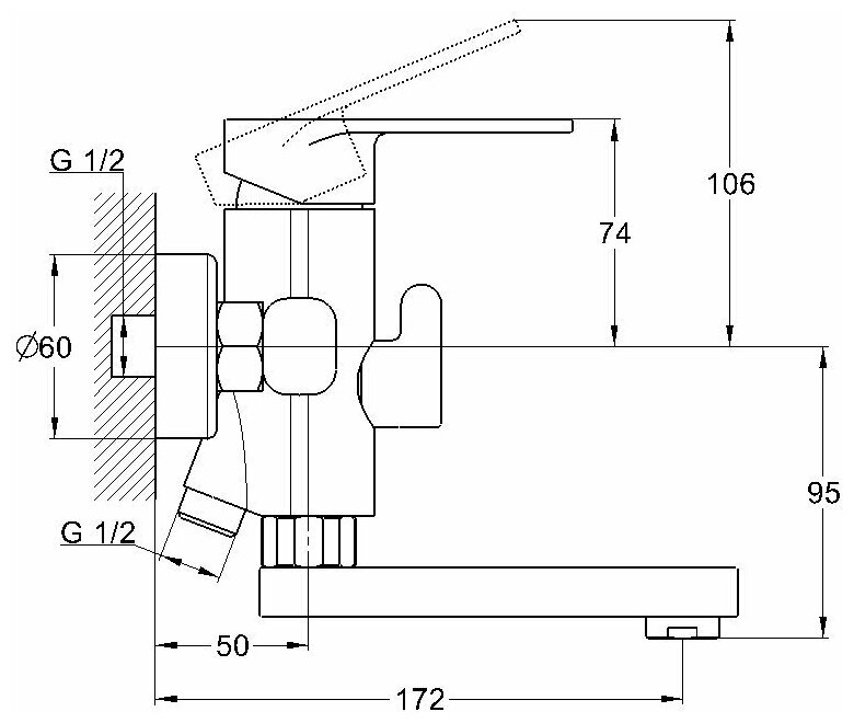 G-Lauf Смеситель для ванны (душа) с коротким поворотным изливом и душевой лейкой, хром