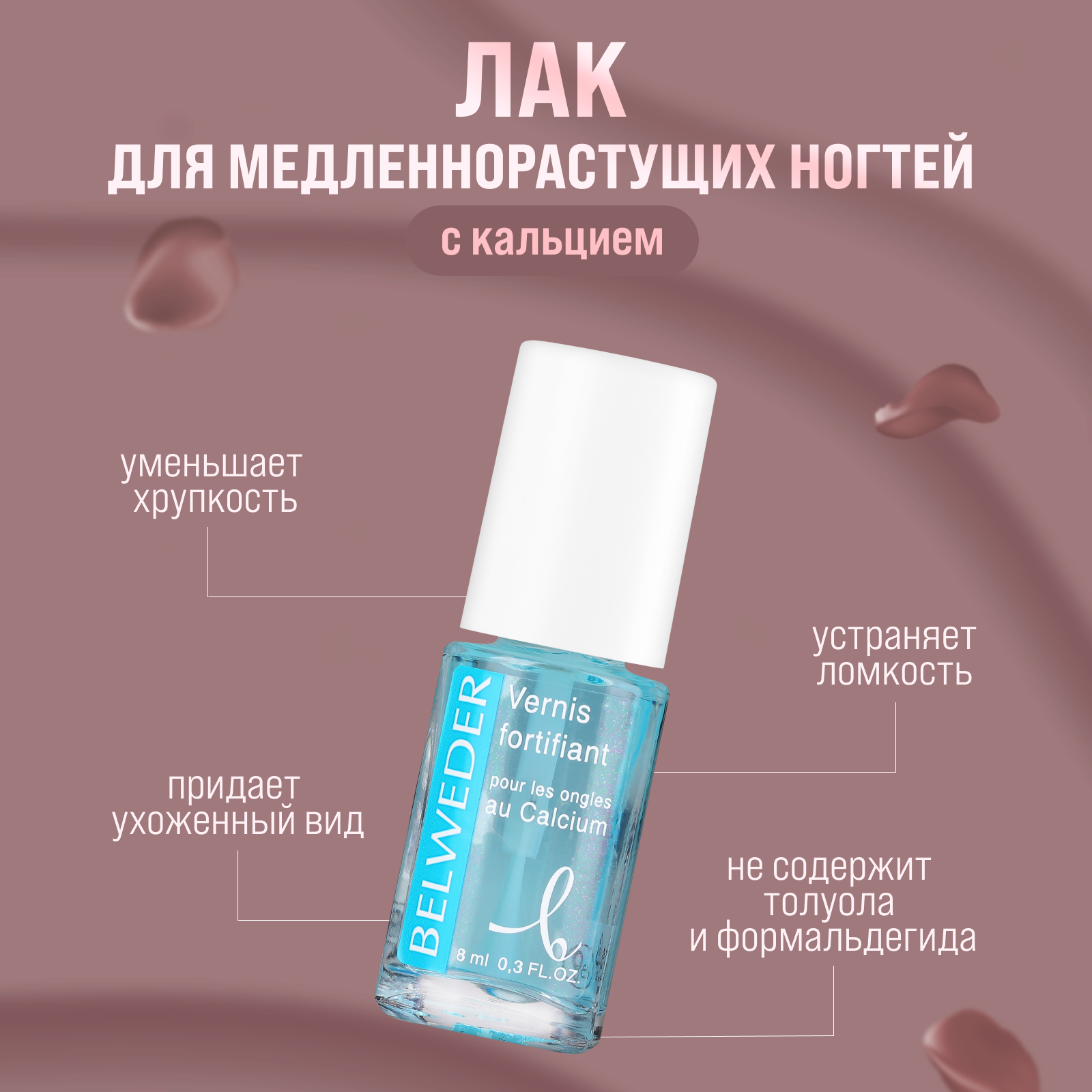 Лак для медленнорастущих и ломких ногтей BELWEDER с кальцием, 8 мл