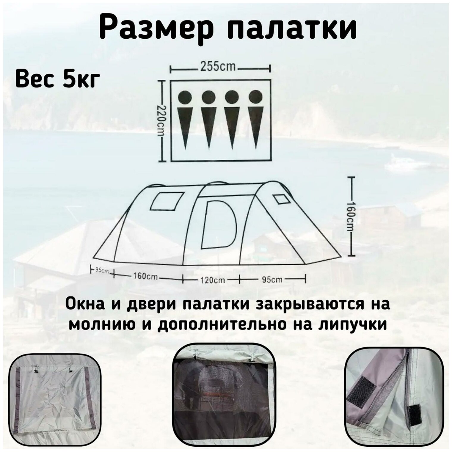 Палатка 4-х местная туристическая кемпинговая Lanyu LY-1909, 470х220х160 см, 2 штуки