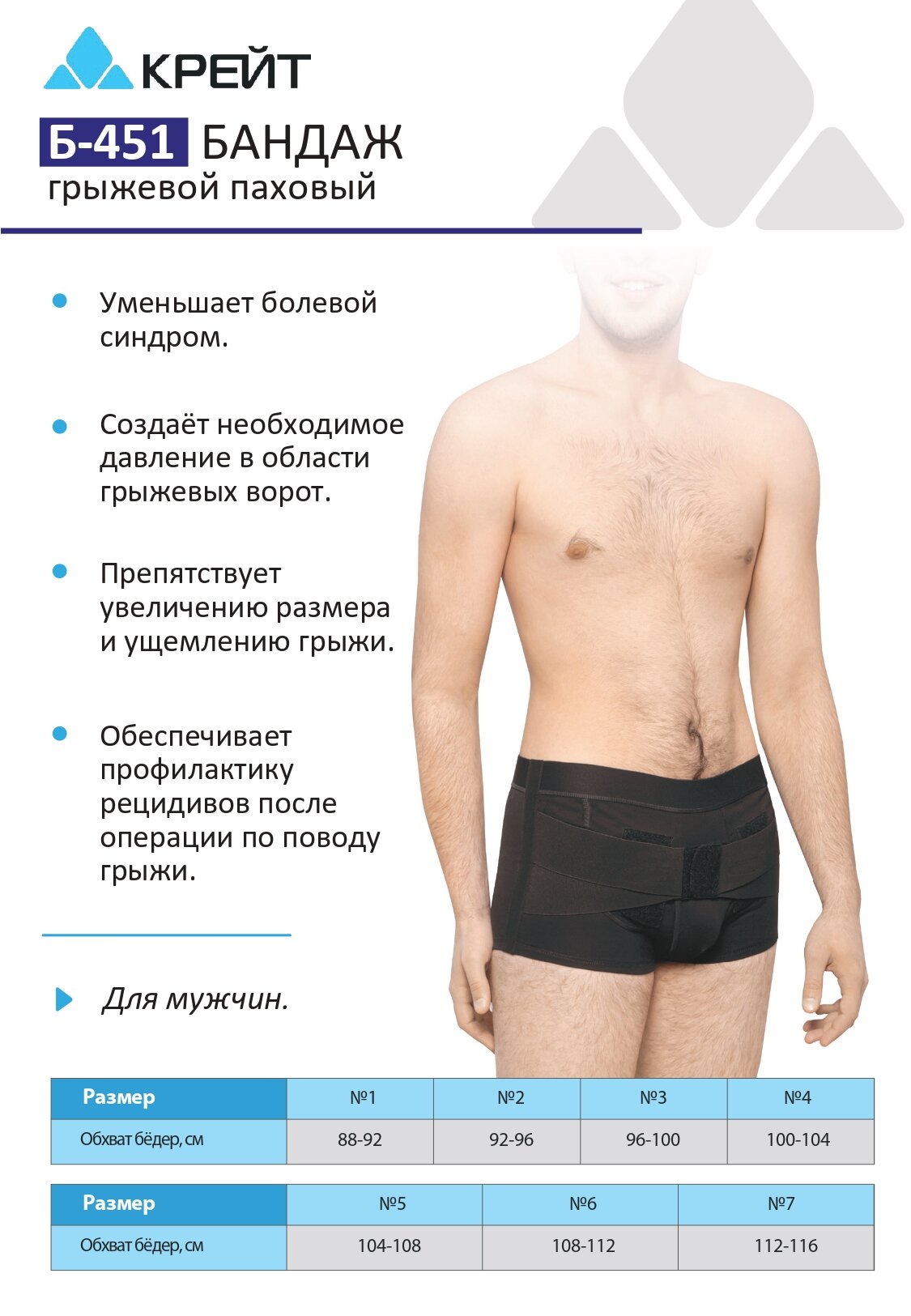 Бандаж грыжевой паховый Крейт Б-451, Размер 7
