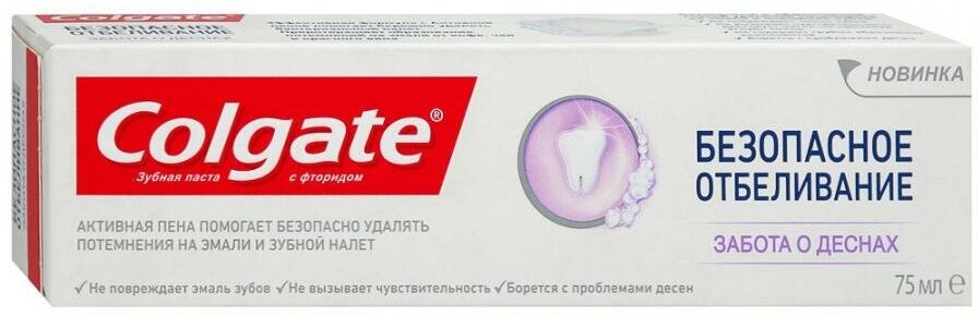 COLGATE Безопасное отбеливание Забота о деснах отбеливающая зубная паста, 75 мл