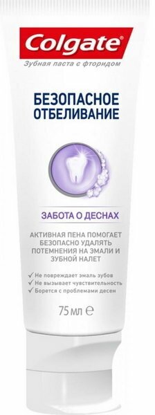 Зубная паста Colgate Безопасное отбеливание Забота о деснах отбеливающая, 75 мл интересное: