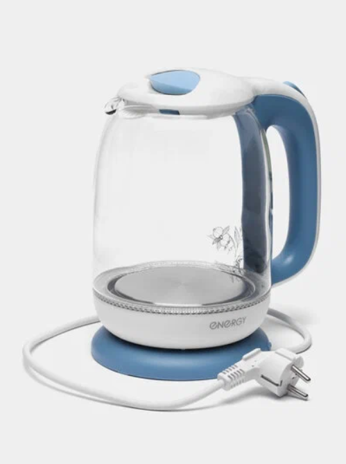 Чайник электрический Energy E-281 1,7 л, стекло, пластик, голубой