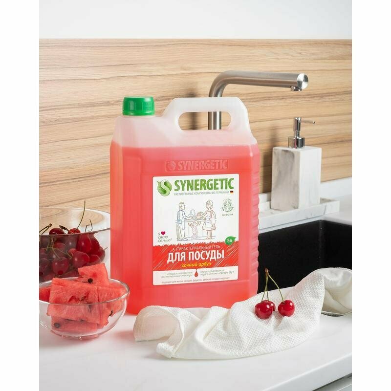 Средство для мытья посуды Synergetic "Арбуз", с антибактериальным эффектом, 5 л