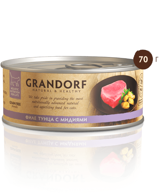Консервы Grandorf для кошек: филе тунца с мидиями / 70г х 6шт