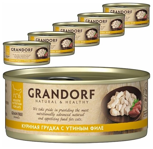 Консервы Grandorf для кошек: куриная грудка с утиным филе / 70г х 6шт