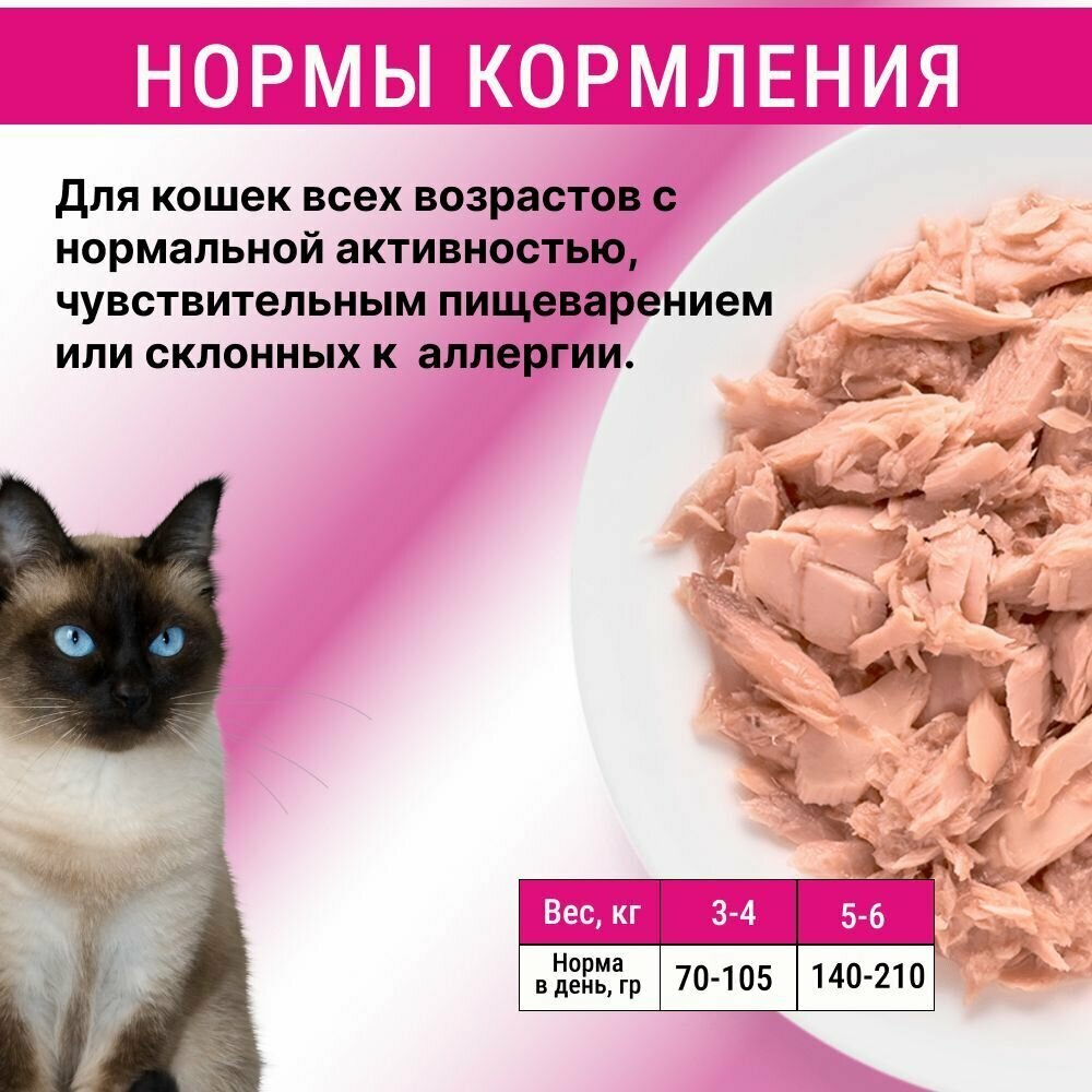 Корм для кошек влажный Grandorf / Грандорф для взрослых животных, кусочки тунца в собственном соку 70г / консервы