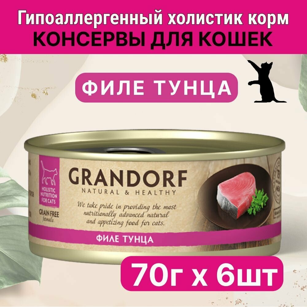 Консервы для кошек Grandorf Holistic Филе тунца в собственном соку, 70 г х 6 шт.