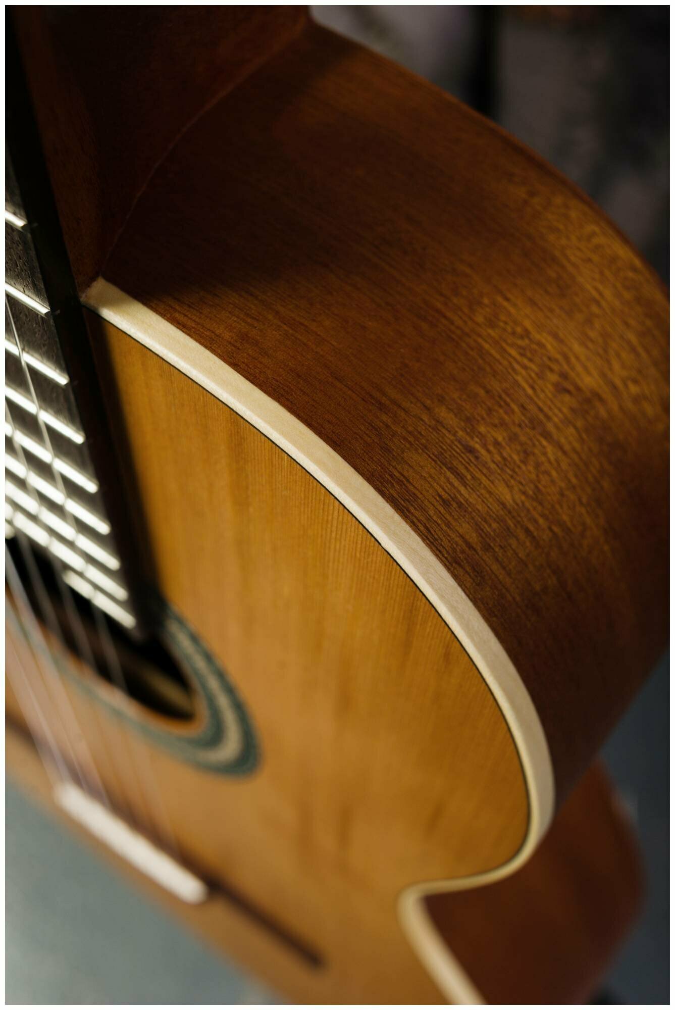 | Отзыв: | Отличная, настоящая испанская гитара с массивом кедра на верхней деке. Очень объемно и ярко звучит, обалденно удобно лежит в руках - просто супер! |