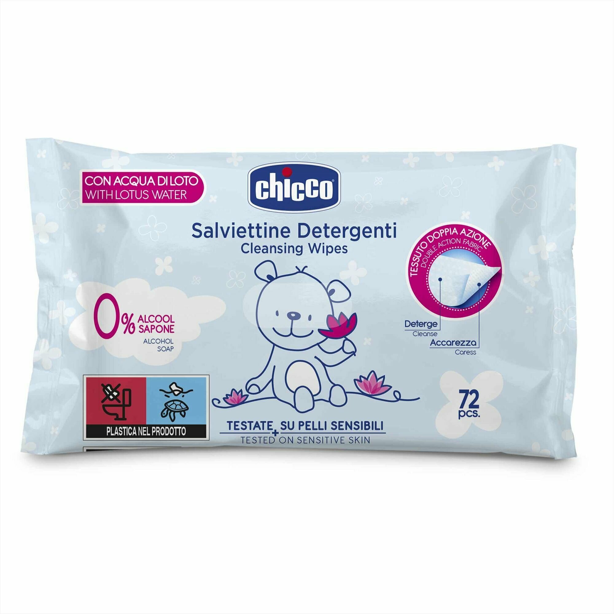 Влажные салфетки Chicco Очищающие, пластиковая крышка, 72 шт.