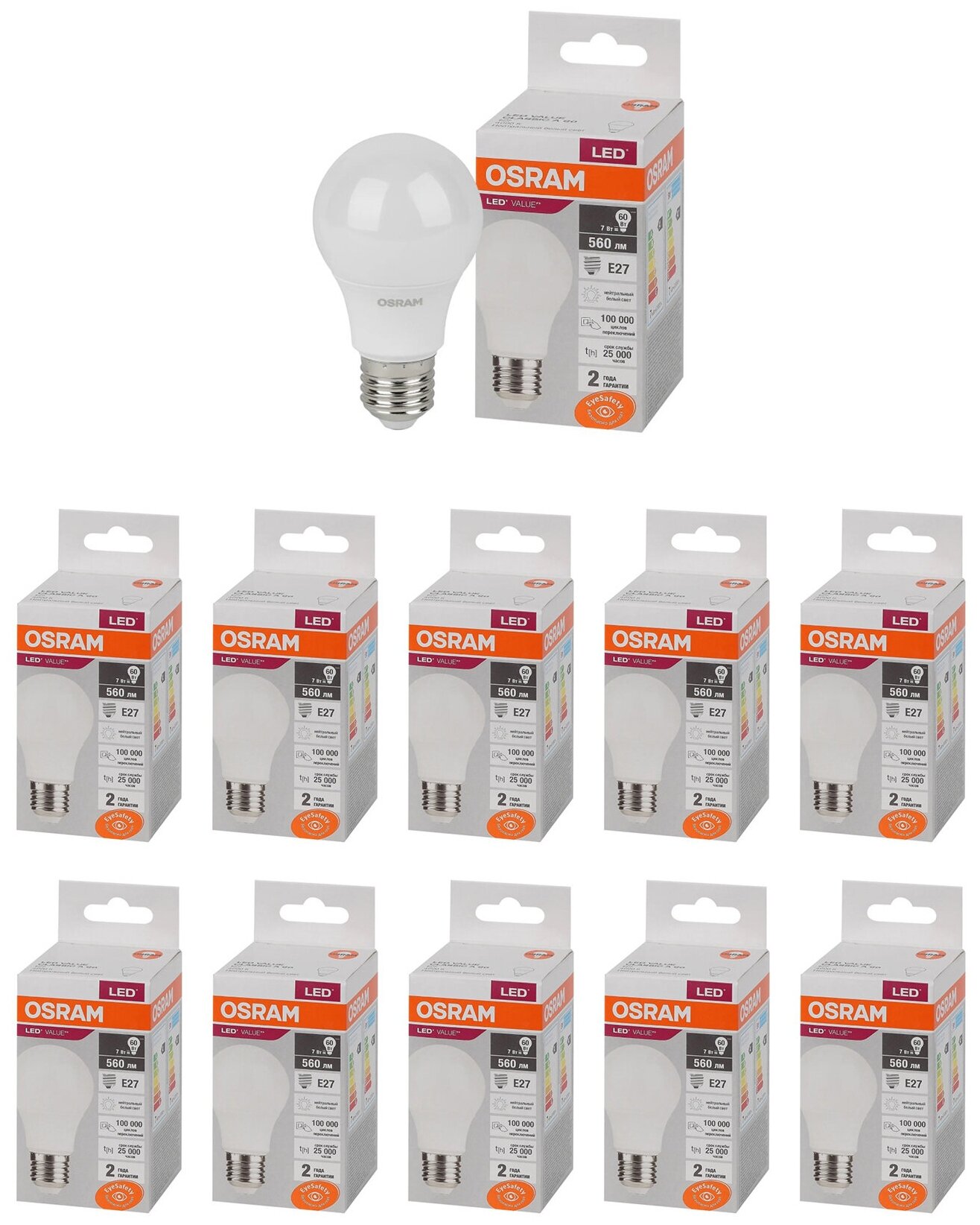 Купить Лампочка светодиодная OSRAM Груша A E27 7Вт 220В 560Лм 4000К Дневной белый, упаковка 10шт