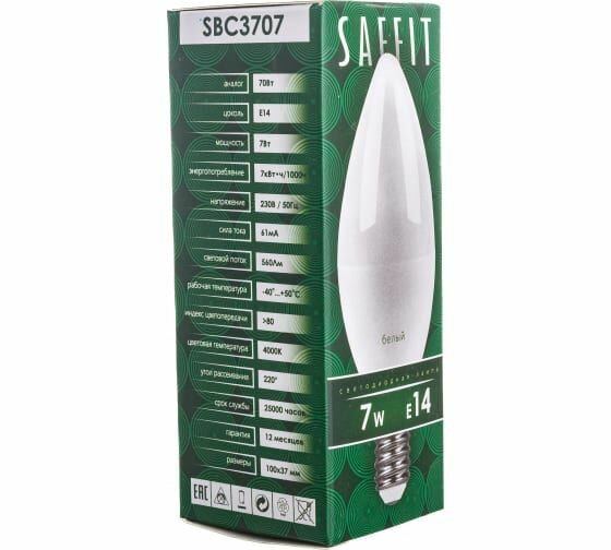 Ниже Вы можете прочитать отзывы на Светодиодная лампа SAFFIT SBC3707 Свеча E14 7W 4000K 55031, ознакомится с подробными характеристиками, посмотреть интересные обзоры и фотографии на Светодиодная лампа SAFFIT SBC3707 Свеча E14 7W 4000K 55031.