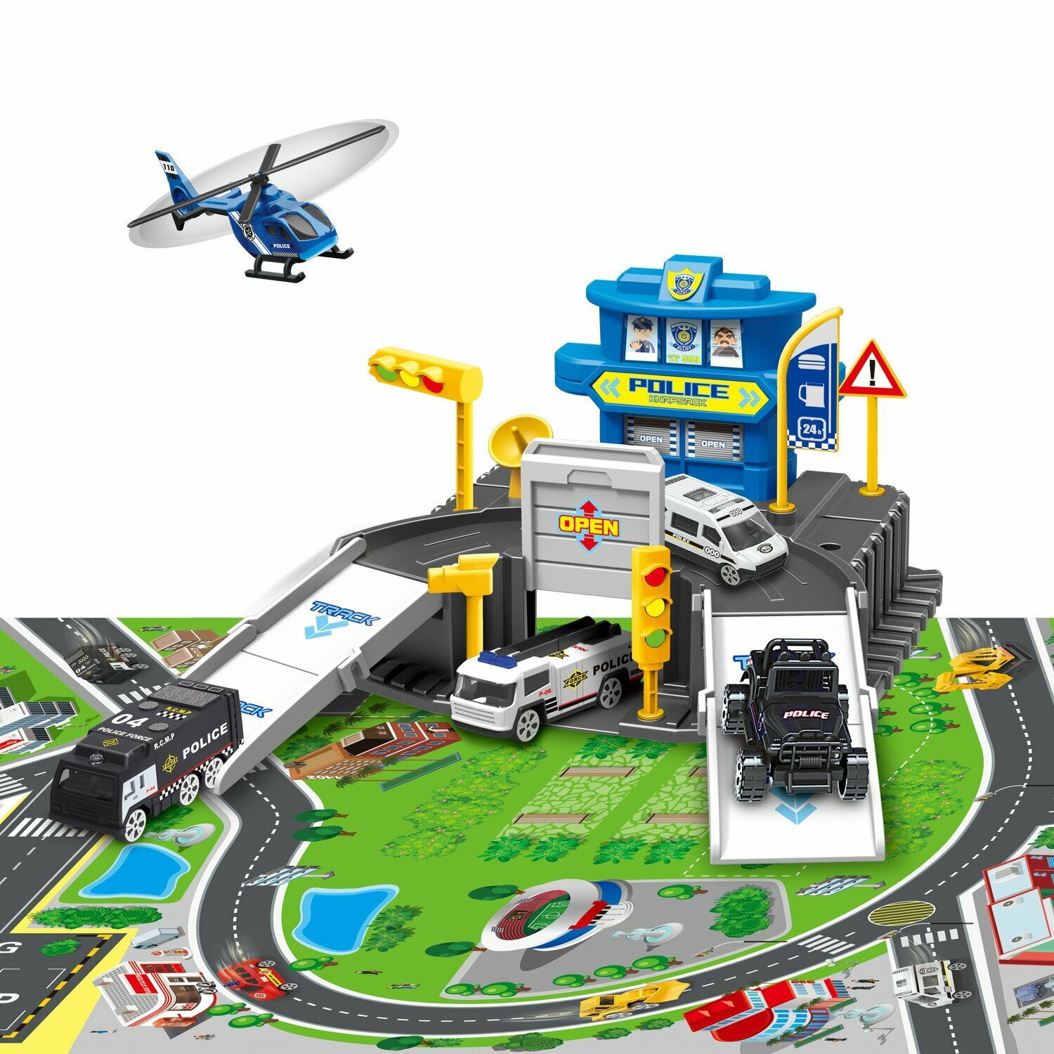 Купить Игровой набор Junfa Полицейский участок с машинкой, вертолетом и ландшафтной картой WA-25557