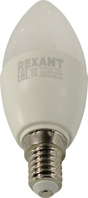 СДС ООО Лампа светодиодная Rexant Свеча, Е14, 11,5 Вт, 2700 К, теплый свет