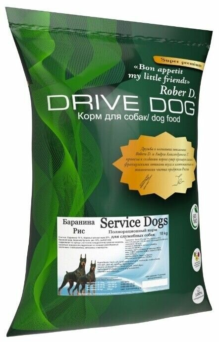 DRIVE DOG Service Dogs полнорационный сухой корм для служебных собак баранина с рисом 10 кг