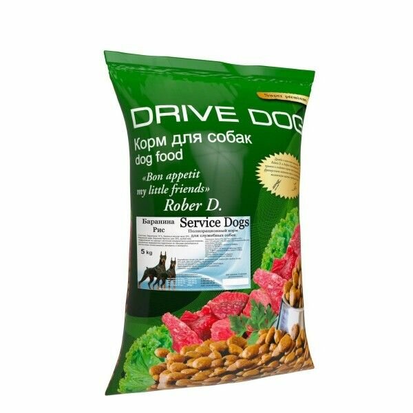 DRIVE DOG Service Dogs полнорационный сухой корм для служебных собак баранина с рисом 5 кг
