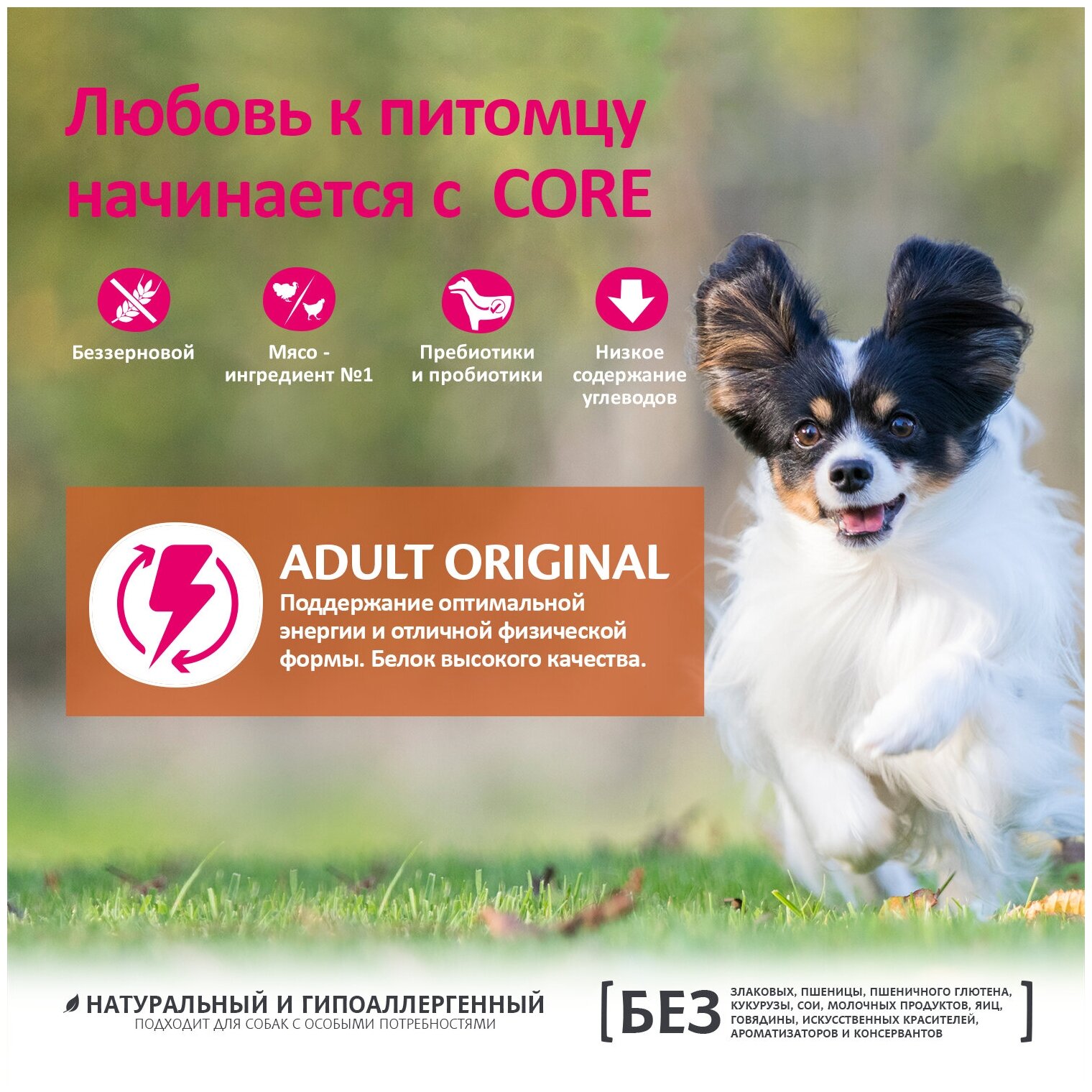 CORE ORIGINAL DOG ADULT SMALL BREED беззерновой для взрослых собак маленьких пород с индейкой и курицей (5 кг)