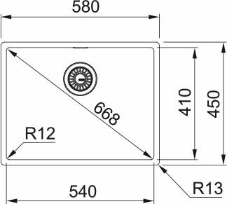 Мойка Franke 127.0677.190/ Best, Серия BOX, Мойка BXX 210-54, мойка 580x450 mm, чаша 540x410x200mm R 12 мм, возможен монтаж сверху, вровень и под стол