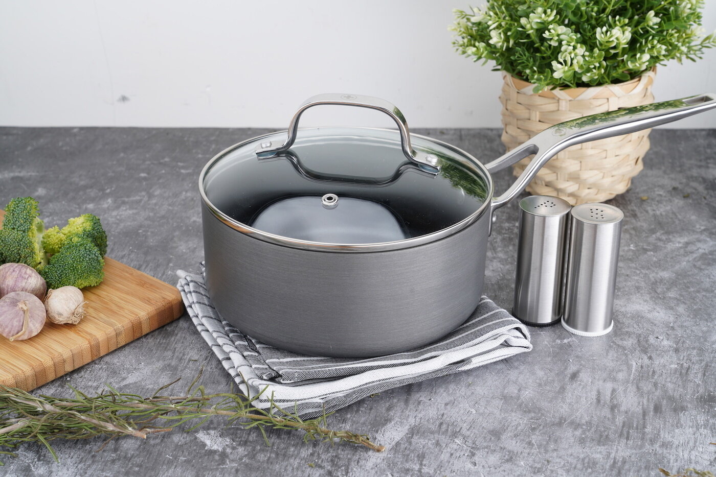 Ковш с крышкой, объем: 1,5 л, материал: алюминий, цвет: серый HA3716IC Hard Anodised