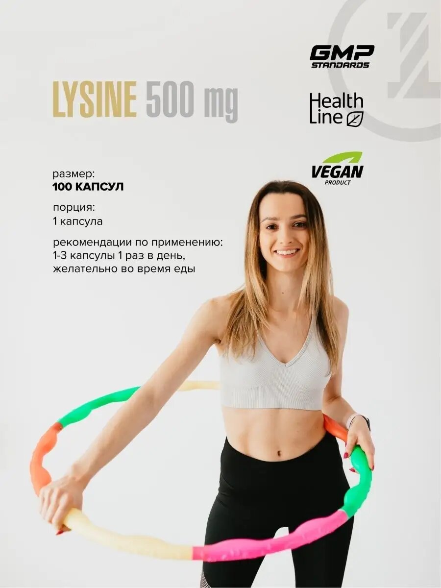 | Дополнительная информация | в 1 порции: лизин (лизин гидрохлорид) - 500 мг; размер порции в капсулах/таблетках: 1; назначение: способствует синтезу коллагена, помогает поддерживать мышечную массу тела, ее нормальный рост и развитие; способствует обмену жиров и выработке энергии; поддерживает функционирование иммунной системы; рекомендации по применению: в качестве диетической добавки принимайте 1-3 веганские капсулы 1 раз в день, желательно во время еды; состав: лизин (лизин гидрохлорид), рисовая мука, стеарат магния, кремния диоксид, метилоксипропилцеллюлоза (оболочка капсулы) |