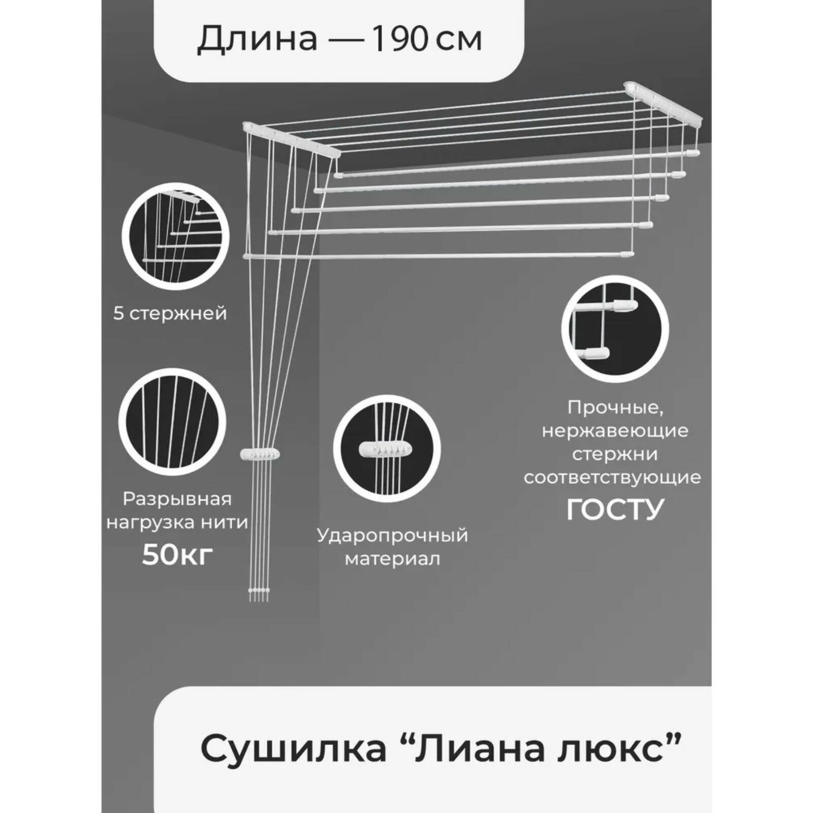Сушилка для белья потолочная Лиана Люкс 5 линий 1,8 м 9415547 .