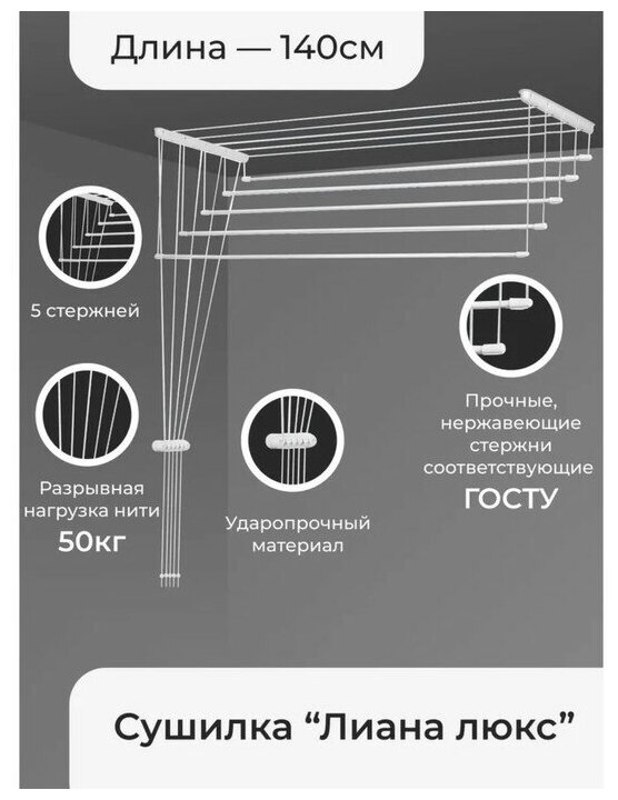 Сушилка для белья потолочная Лиана Люкс 5 линий 1,4 м 9206022 . интересное: