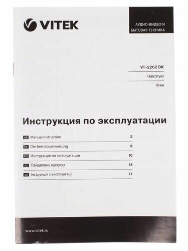 Ниже Вы можете прочитать отзывы на Фен VITEK VT-2262, черный, ознакомится с подробными характеристиками, посмотреть интересные обзоры и фотографии на Фен VITEK VT-2262, черный.