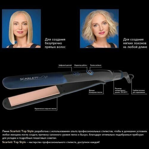 Scarlett Выпрямитель Scarlett SC-HS60T83, 42 Вт, керамическое покрытие, до 220°C, чёрный/синий