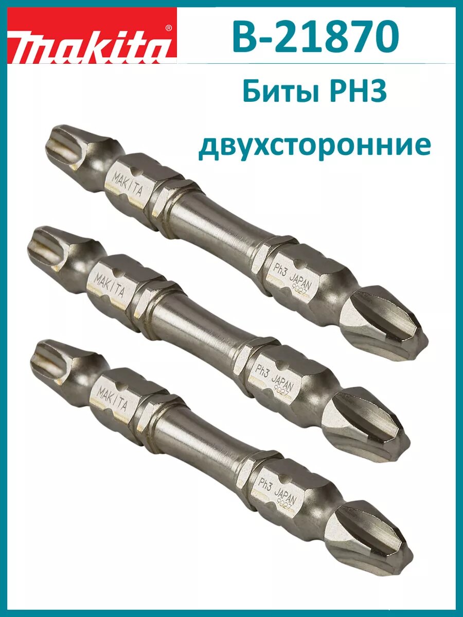 Набор бит Makita Phillips 65 №3 2-х сторонние 3шт B-21870 интересное: