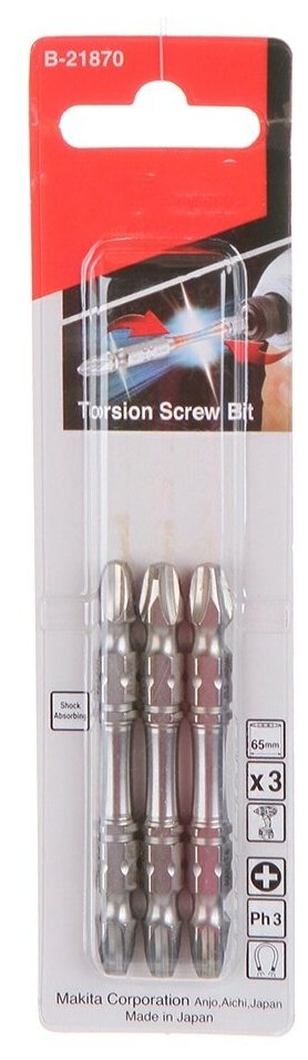 Бита двусторонняя Silver Torsion PH3, 65 мм, E-form (MZ), 3 шт Makita B-21870 интересное:
